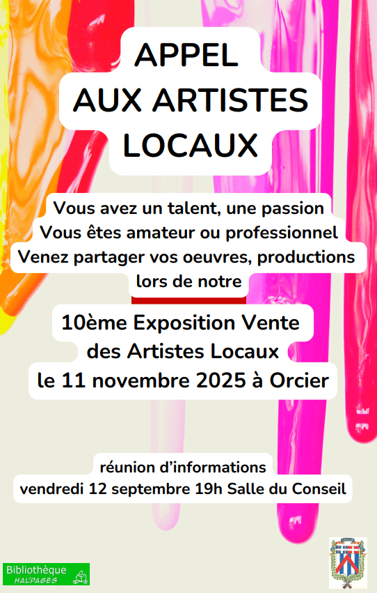 10ème exposition vente des artistes locaux + Ajouter à mon Agenda Google + Exportation iCal / Outlook Lieu Salle des fêtes Rue de l'École, 74550 Orcier