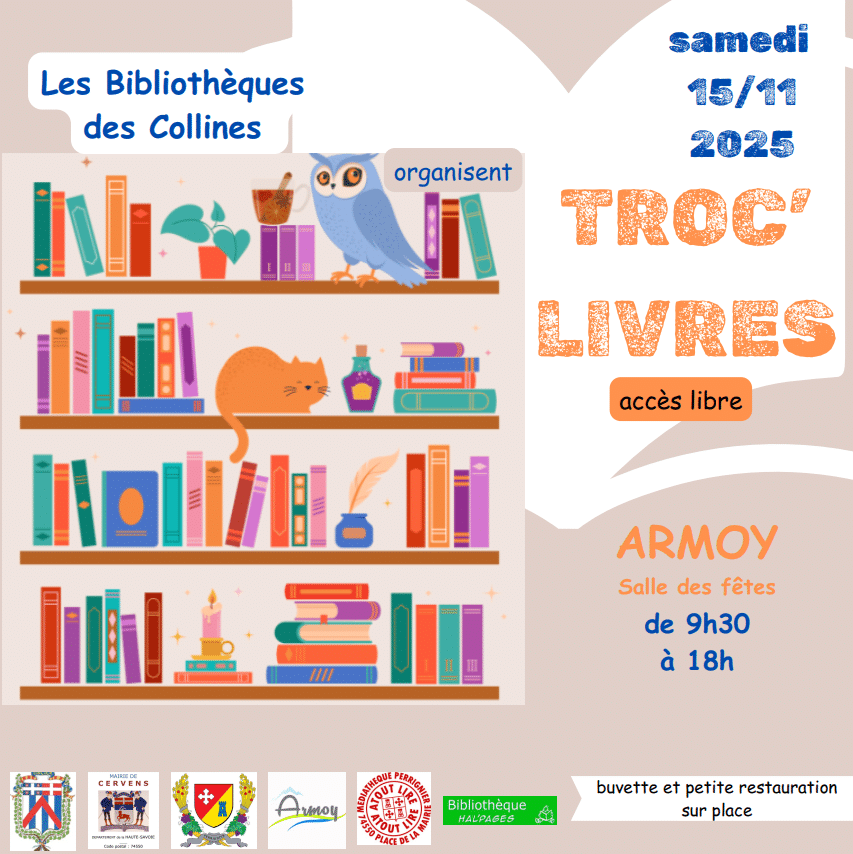 Troc’Livres – Bibliothèques des Collines – salle des fêtes d’Armoy + Ajouter à mon Agenda Google + Exportation iCal / Outlook 00 jours 00 heures 00 minutes 00 secondes