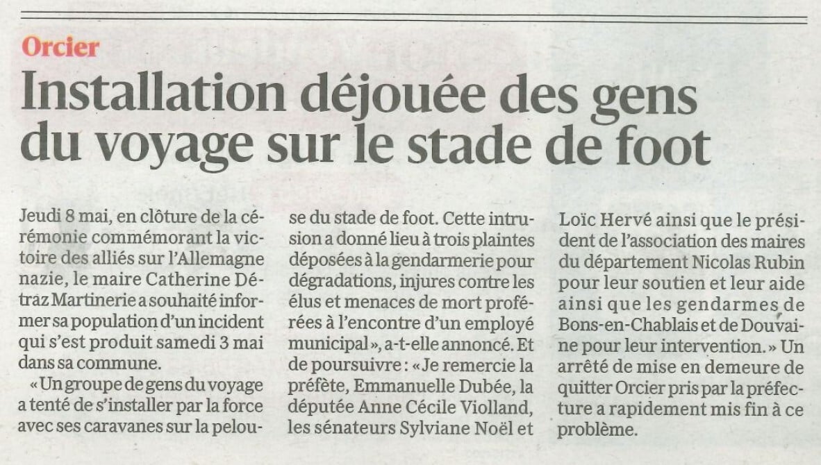 Installation déjouée des gens du voyage sur le stade